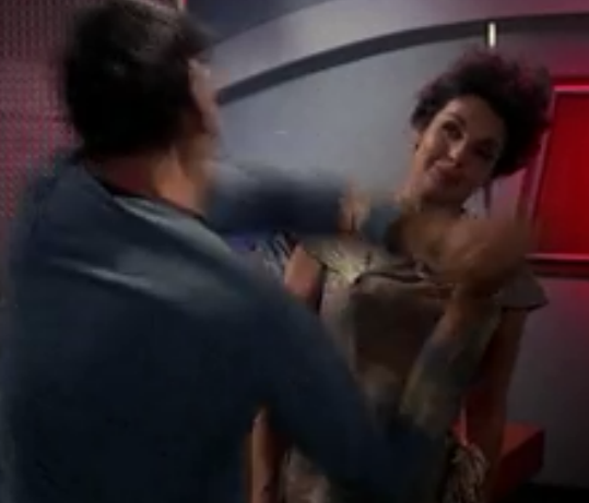 10:26-11:30 Kind of strange scene between Uhura and Spock. Spock’s reaction is supposed to be cold and alien, but it comes off more as Uhura being a weirdo and Spock reacting appropriately… “Why don’t you tell me I’m an attractive young lady” -Uhura
