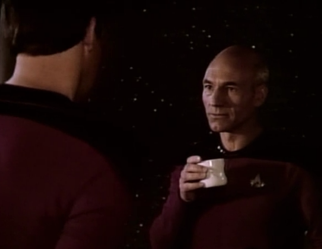 Another reason I like this episode is a little more controversial: Picard is kind of a jerk. For StarTrek.com’s Jordan Hoffman it seems like one of the main reasons for giving it a 1.5/5 rating. Most people think Picard (and especially Patrick Stewart) is still cool in this episode, but are put off by how mean he is. I actually liked it. I like how everyone is afraid of him. I like that he yells at Wesley, and hates kids, and forces Riker to prove himself. A lot of people appreciate the ways Picard is made to look different than Kirk in this episode (which I agree is good), but I kind of liked it when Kirk was mean too. I also liked it when Sisko was mean, and had problems with Janeway and Archer not being able to convincingly sell their toughness. It might just be personal taste, but seeing the aggressive or impersonal side of a captain adds a dimension of reality to a person with that position. Captains with a mean streak are awesome.