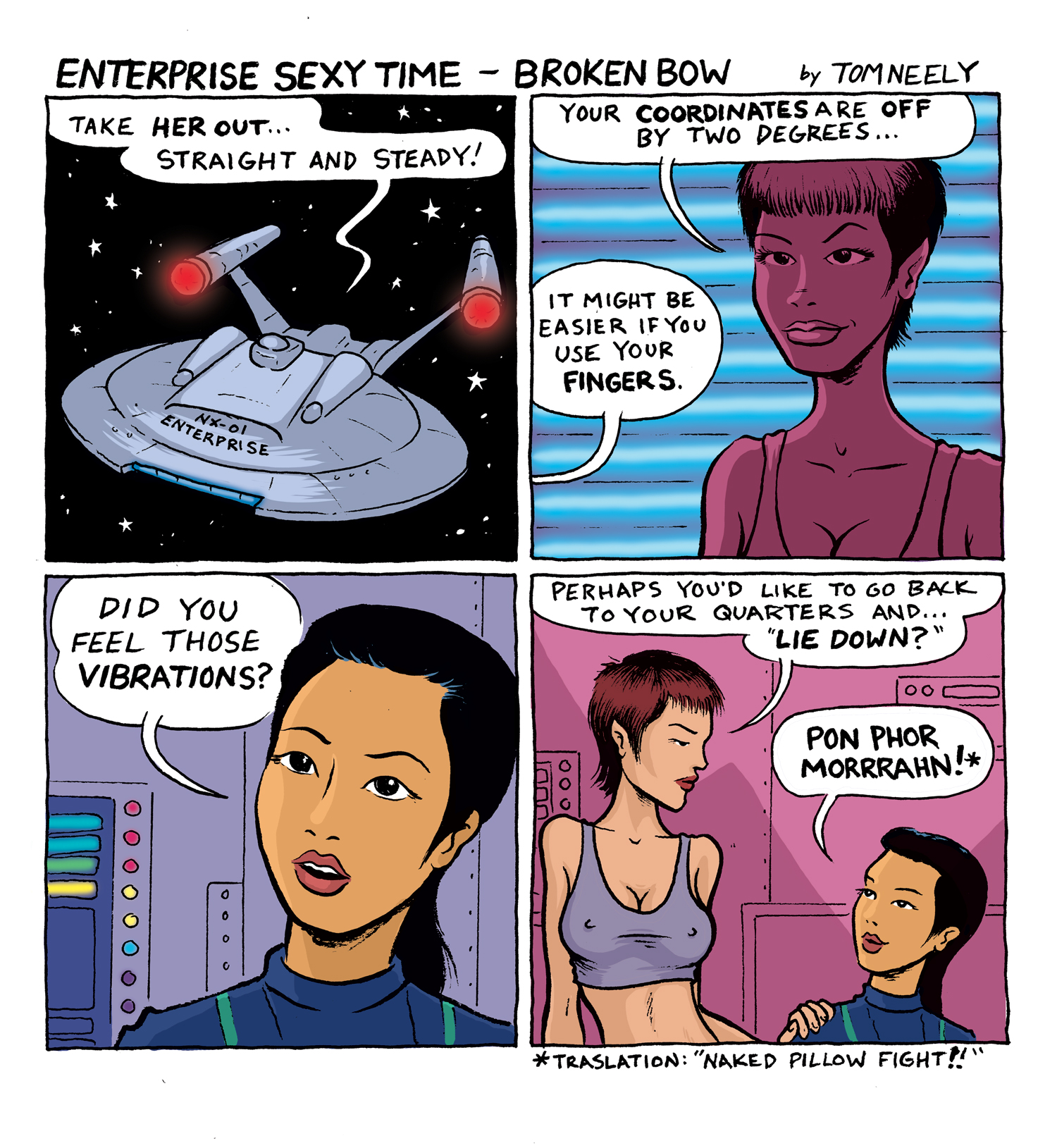 Enterprise frequently tries to be sexy, but in “Enterprise Sexy Time” Tom Neely reconfigures moments from the show for unexpected sexiness.