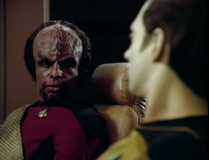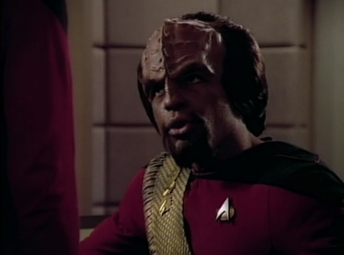 Worf doesn’t know much about the Ferengi yet, but he seems to be in disbelief that they could paralyze Enterprise. “Immobilized by the damned Ferengi!” – Worf