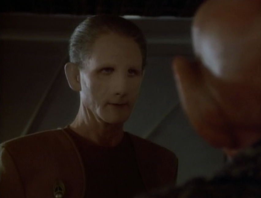 Sisko: “Bread the arrive seen earlier.” Constable: “Oh, I see.” Ha, Odo has the best reaction to disease. On a more irrelevant note, since this type of aphasia makes it so you can’t understand speech as well as speak understandably, wouldn’t Odo and Sisko not be able to tell which one of them had been showing the signs of the disease?