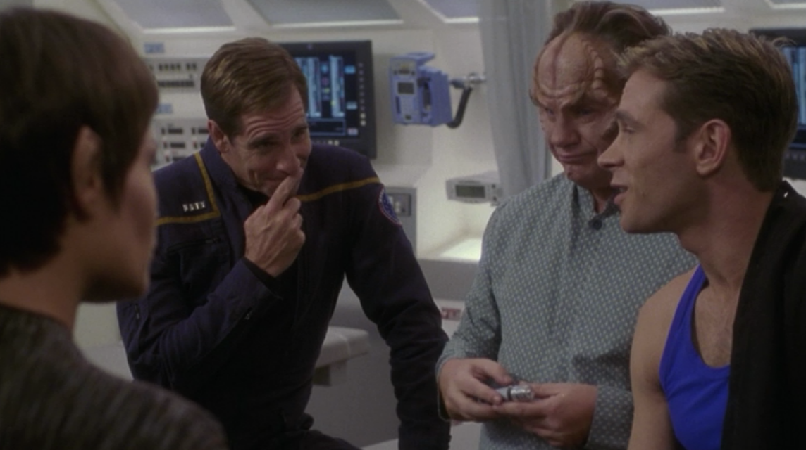 After hearing the synopsis of this episode I was afraid most of it was going to be Trip making this face and the rest of the crew making stupid jokes. Fortunately it was only about a third of the episode!