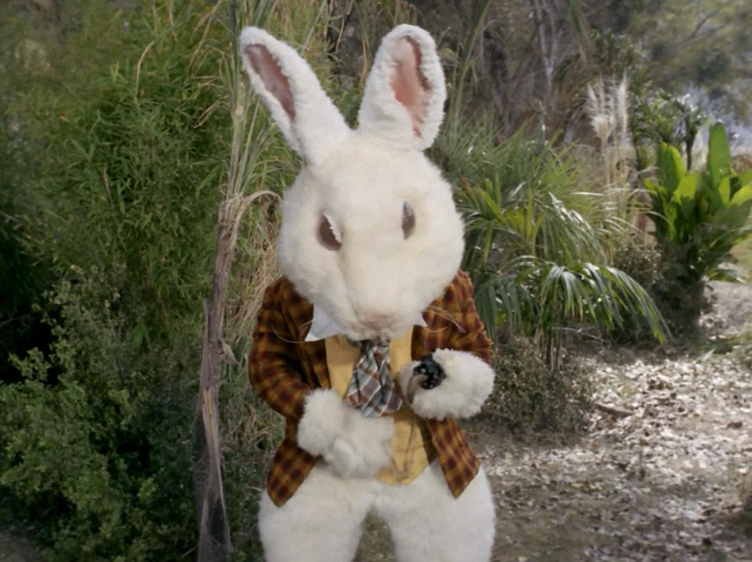 Before the opening credits we see Bones thinking about Alice in Wonderland, and then he sees Alice in wonderland. Every viewer (except maybe the Voyager fans) figures out right from the start that these things are appearing because of their thoughts. Yet it takes about 40 minutes for Kirk to verbalize that he’s finally figured it out