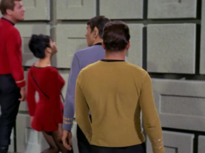They keep saying that they’re at war, and that there is real danger. Kirk just keeps saying he doesn’t get it. This goes on for way too long. Why won’t they just explain themselves? They have no reason to keep this secret. We have to wait for Spock to basically guess what’s going on.