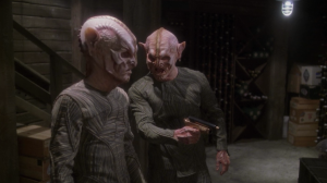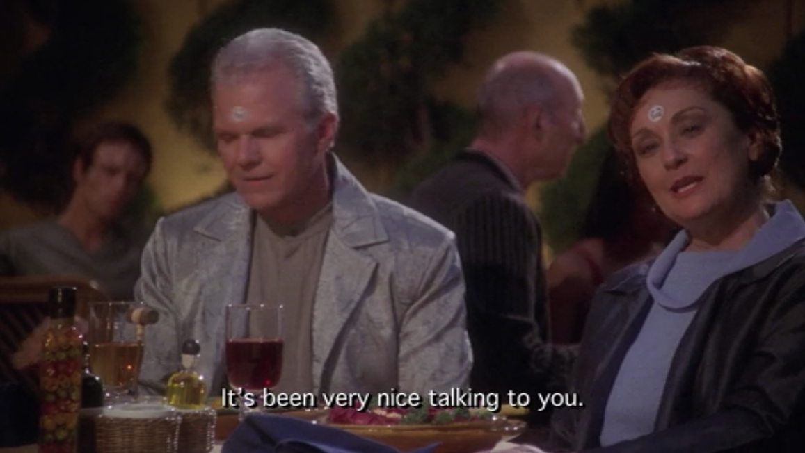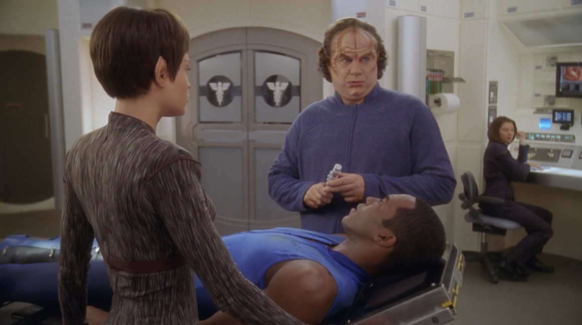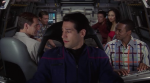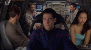 Some of you may be shocked that we’re giving this a 3, considering we tend not to go for the attempted-comedy episodes, but there were some aspects we liked about this one. The shear number of plots made the episode move quickly enough that the lame plot-lines weren’t too annoying. We liked that arrival to Risa had been built up to. Phlox may be our favorite character in Enterprise, and this is a good episode for him, which is a main reason for it barely making it to a 3 rating.