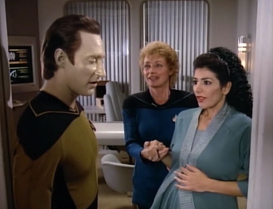 Data vs Pulaski ← Previous Next → Pulaski: “In my other deliveries, except for a couple, the father was always present… Counselor Troi is going to need the comfort of a human touch not the cold hand of technology.” How can she say such a thing to Data! Let’s be outraged!
