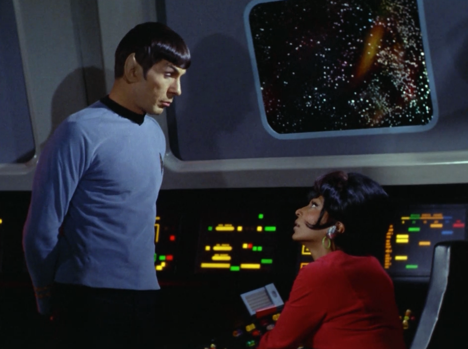 Spock and Uhura ← Previous Next → Uhura finds a way of communicating with Kirk. They begin to hatch a plan