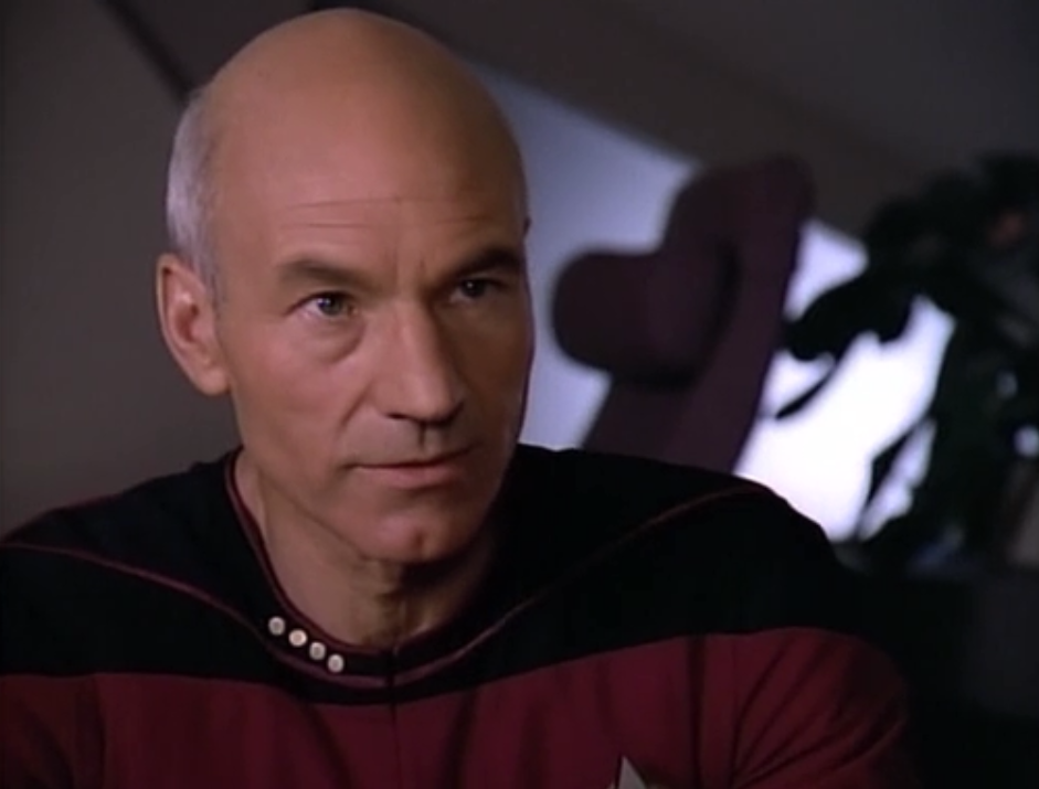 Picard ← Previous Next → …It’s also cool when Picard figures out that he’s being messed with, although Troi and Data very suddenly go from acting completely normal to acting totally different