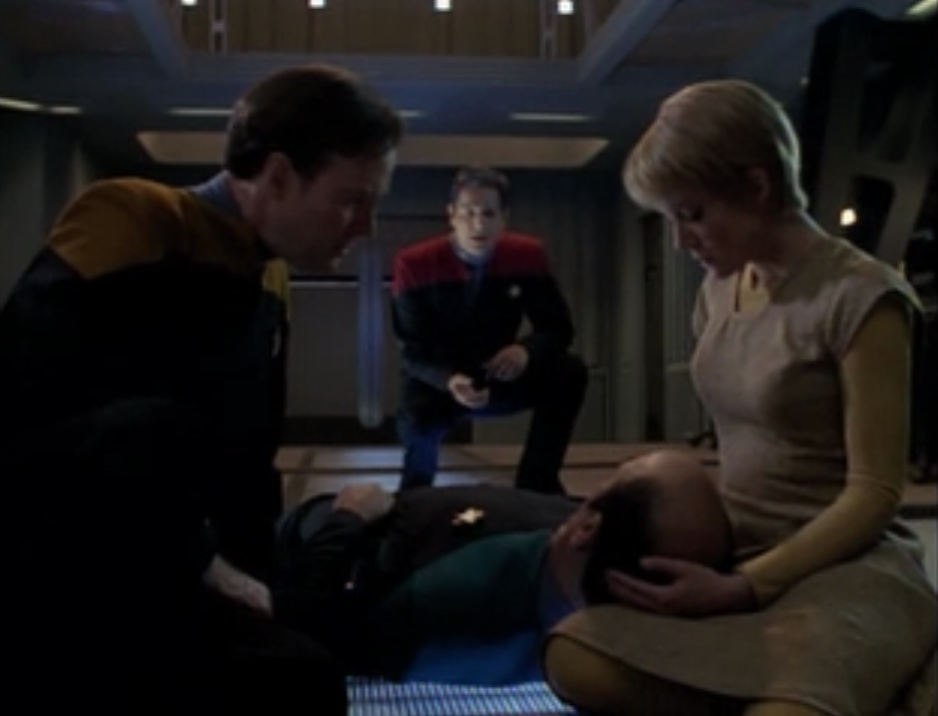 Barclay EMH Kes Chakotay ← Previous Next → The Doctor has to choose who to believe. It’s hard because each has holes in their plots.