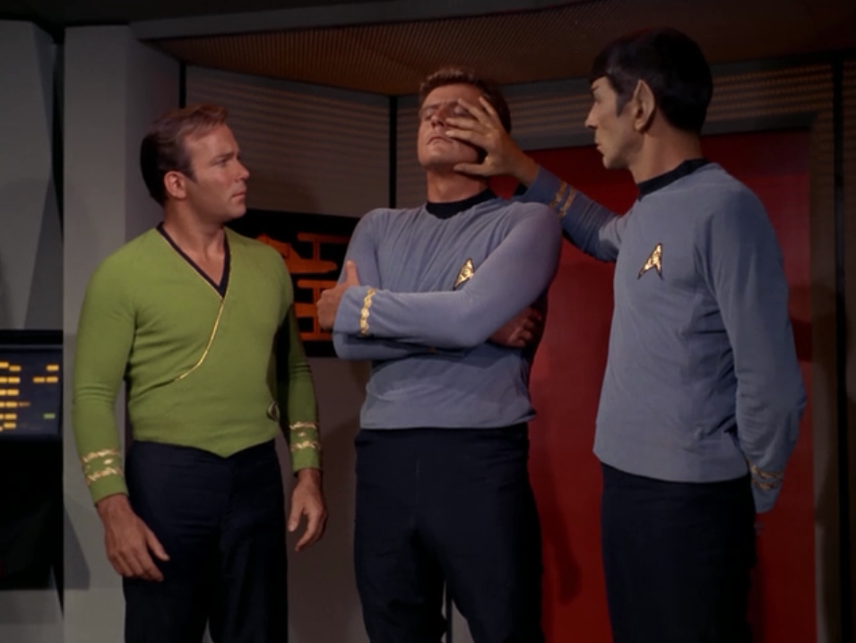 Is Spock doing a mind meld or is he just touching his face?