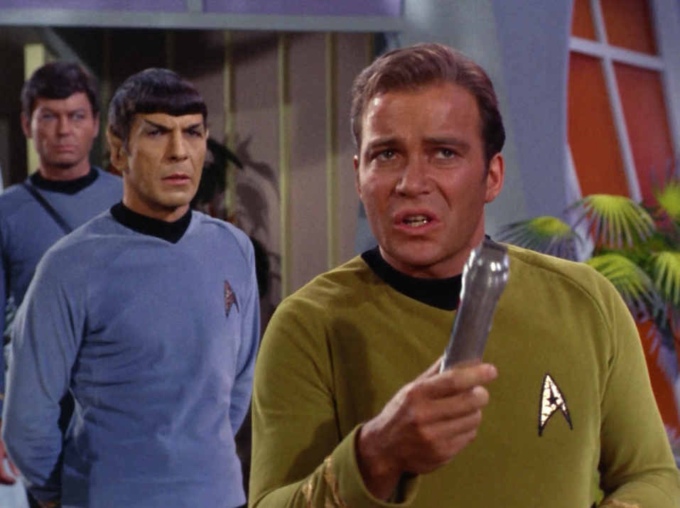 Kirk negotiating ← Previous Next → Kirk decides to negotiate with the companion using a metal rod. I think he forgot the order of operations. You’re supposed to talk and then fight. It get’s ruined when you do it the other way around. Kirk determines that the companion loves Zefram