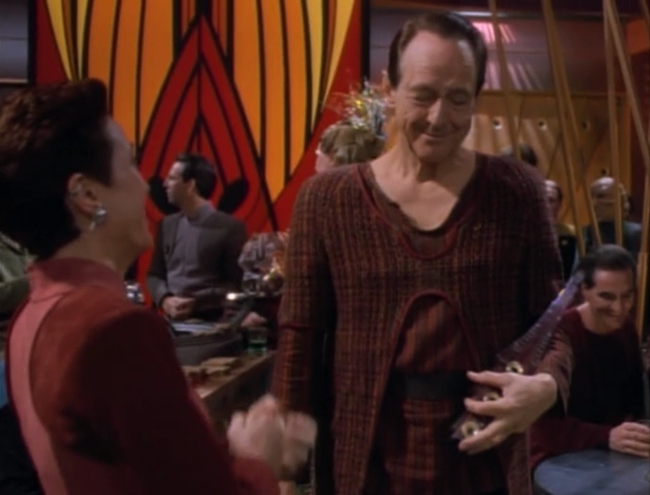 William Schallert – Varani ← Previous Next → There’s a Bajoran musician that appears throughout this episode to play music and give his opinion on things. Thanks Bajoran musician!