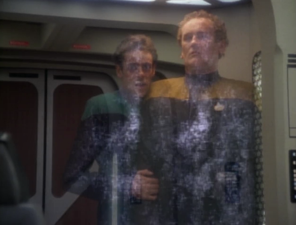 The aliens tell Sisko that O’Brien and Bashir were killed in an accident, and they show a video as proof