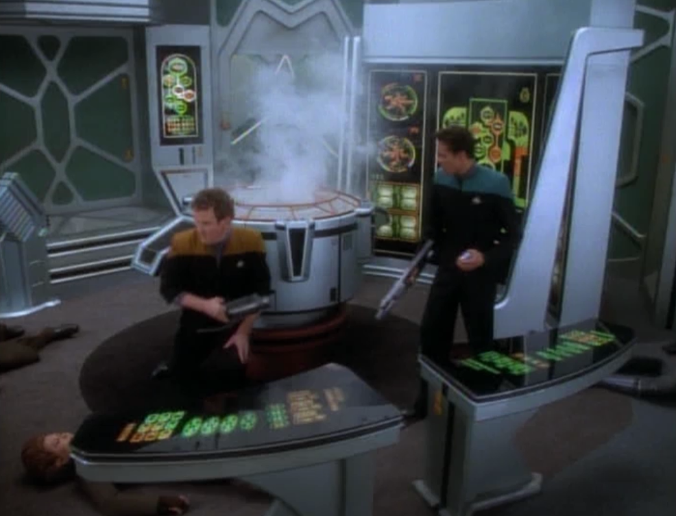 Sisko has a trick to get out of the situation. It’s fairly easy for the viewer to see through the trick, but it’s still good to see Sisko being tricky