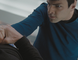 Chris Pine was a good choice for this younger, ambitious, arrogant Kirk. The opening scene with his parents is emotionally powerful and sympathetic motivation for our hero throughout the movie. They effectively sell his determination, with his belief that there’s no such thing as a “no win scenario”, and the telling of the Kobayashi Maru simulation.