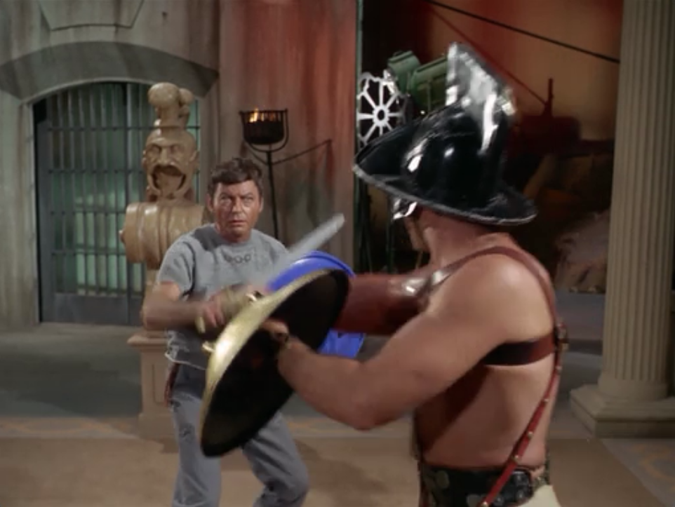 Bones and Spock have to fight some guys to the death on TV. Why do they still dress like ancient Romans?