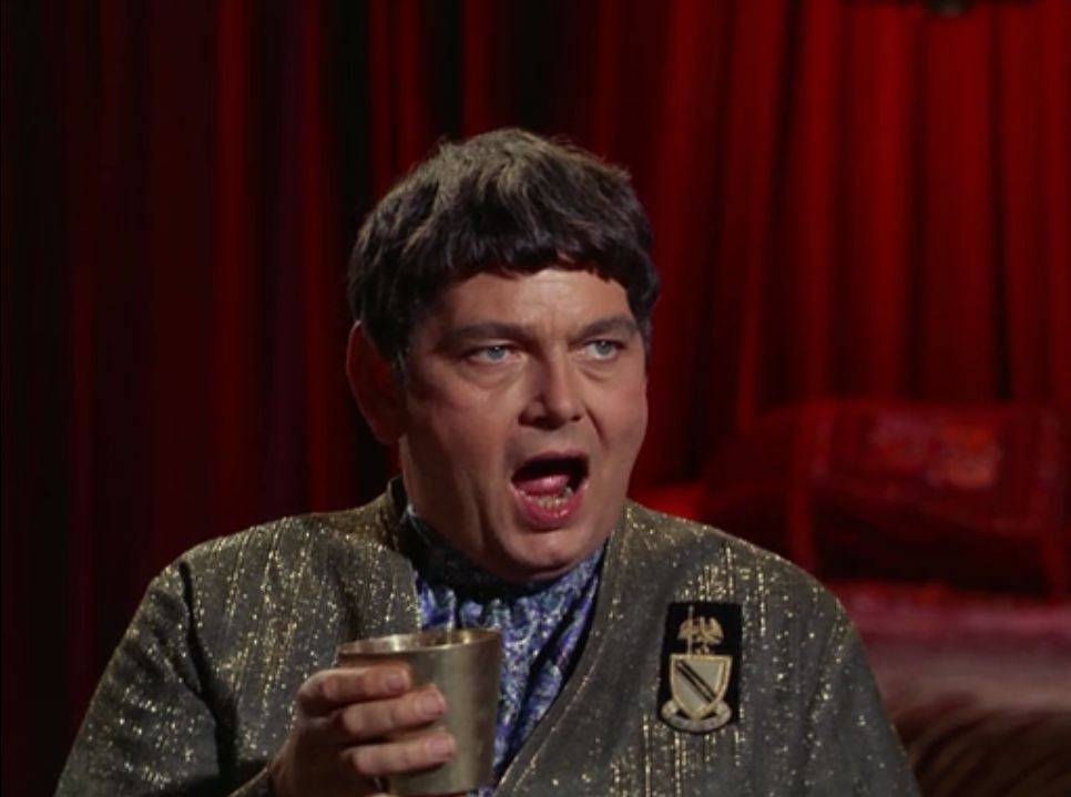 This guy, Claudius, respects Kirk, even though he’s going to have him executed. He says Kirk could have been a Roman, and he even lends Kirk his slave lady for a night, which Kirk seems to acknowledge is wrong…for a few minutes. Claudius also has NO respect for Merik, which raises the issue of why Merik is even their leader. Merik never seems to be packing heat, and they never give the impression that he forced his way into power