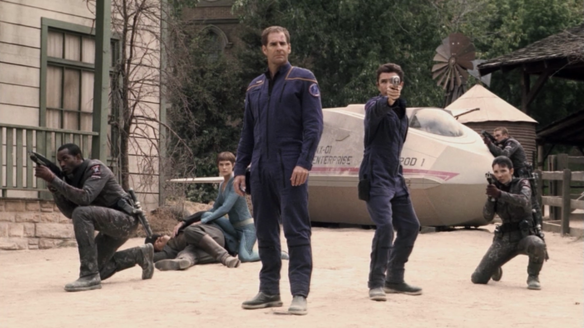 Enterprise finds a planet with humans on it. They live in a wild-west-like settlement