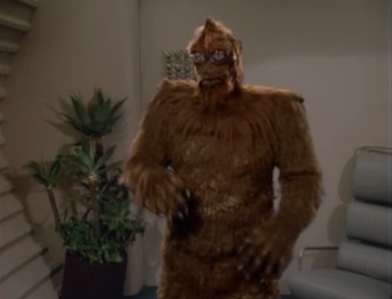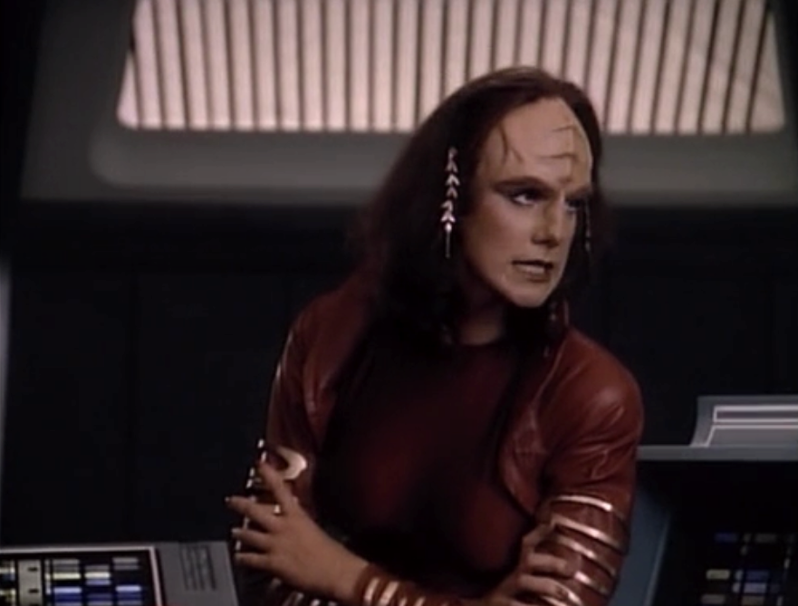 In “Prime Factors” Janeway gets a little flirty with this weirdo, even though she’s engaged. Harry also finds a love interest, which is only strange because we’re meant to believe that someone likes Harry.