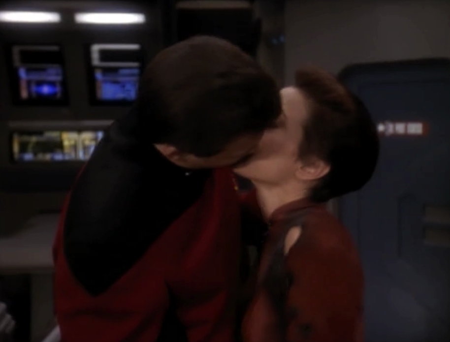 In “Defiant” Kira and Thomas Riker spend most of the episode hating each other, but then they kiss at the end.