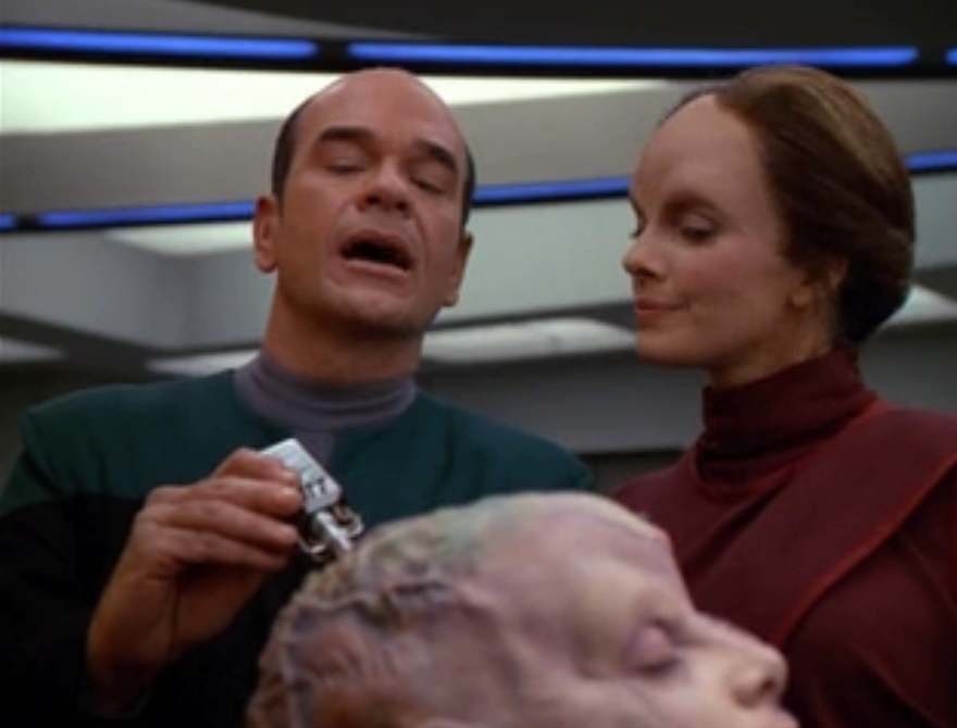 In “Meridian”, within the span of about 10 minutes Dax goes from being unsuccessfully hit on to leaving Starfleet and spending the rest of her life stuck on a planet with this guy. Also, the other plot of this episode is a somebody wanting to purchase a holodeck program of Kira because he finds her so attractive. Super creepy.