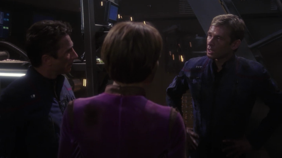 Enterprise answers a distress signal from another ship. They’ve taken a beating from anomalies. Archer says he can give them the cure if they give him a warp coil. They say no. It would mean their return trip home would take three years.