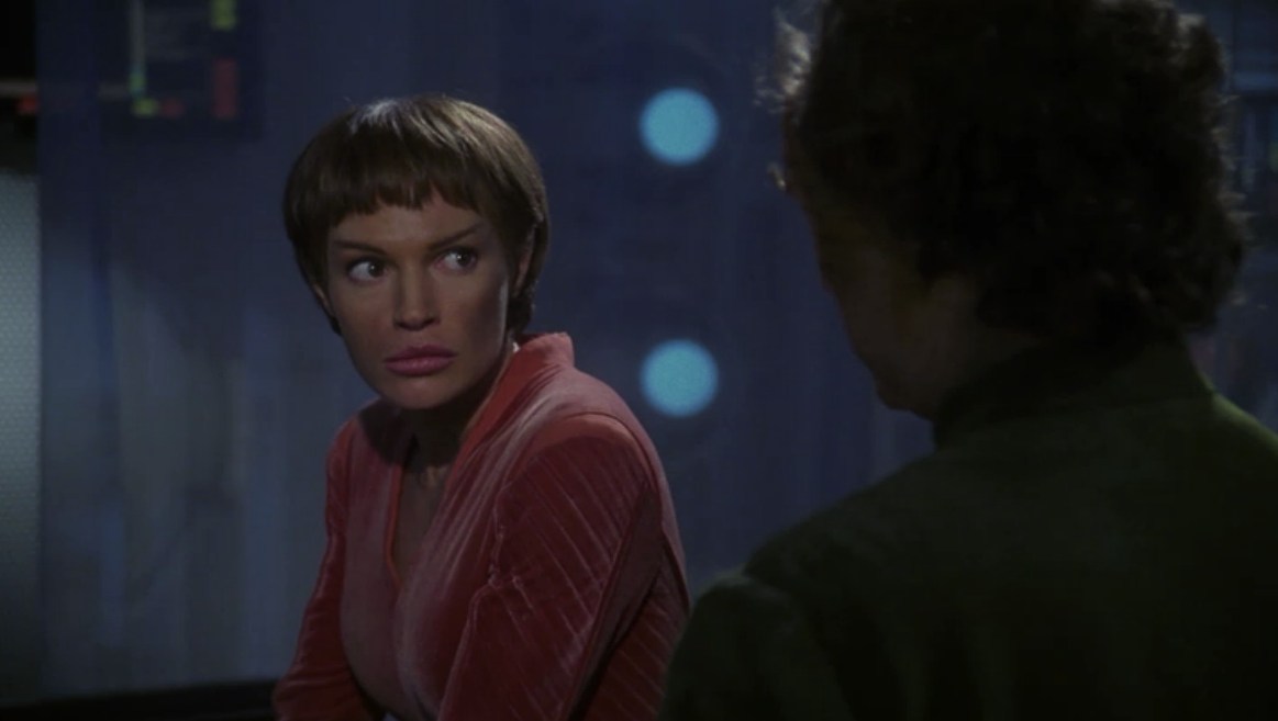 T’Pol goes to Phlox for help. She’s addicted to the drugs. It’s why she’s been acting not very Vulcan-like.