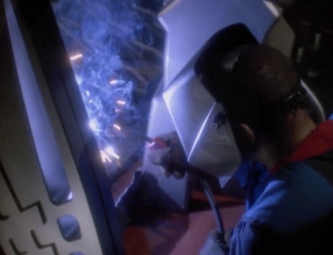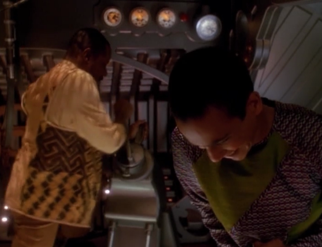 According to Memory Alpha the original script had O’Brien building the ship, but instead they made him the biggest skeptic. He doesn’t think they would have enough air to make a long trip. Yeah, but the bigger question, and one they never address, is how they would get into space, and through the atmosphere of Bajor
