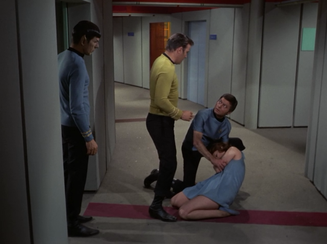 Kirk ← Previous Next → Janice karate chops Kirk. That definitely gives it away. Kirk usually has much better reasons to karate chop ladies