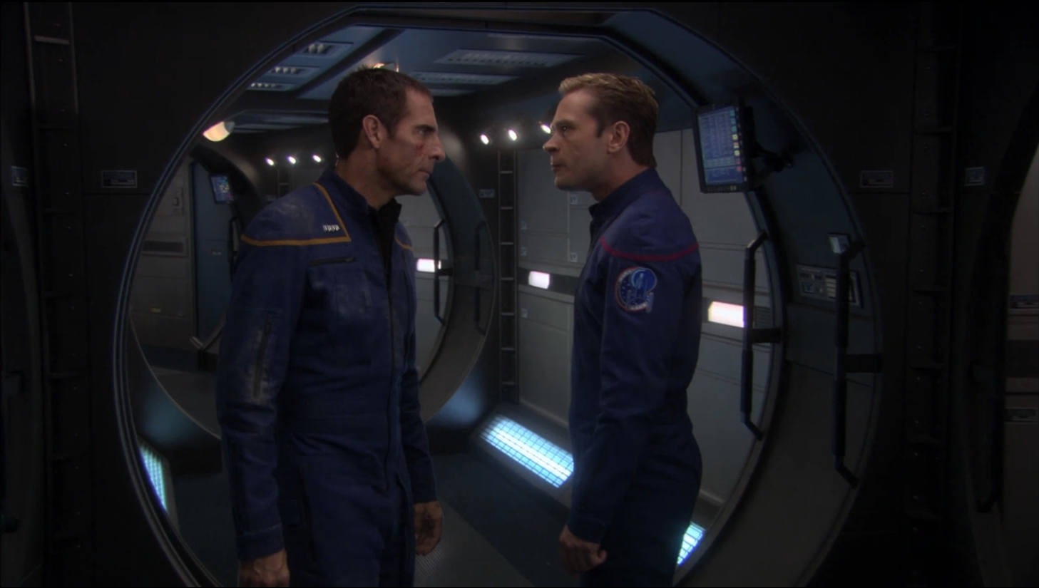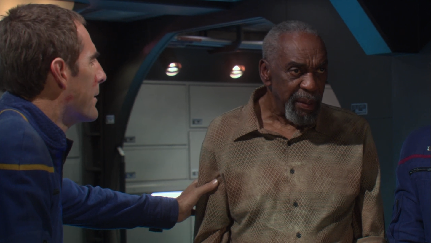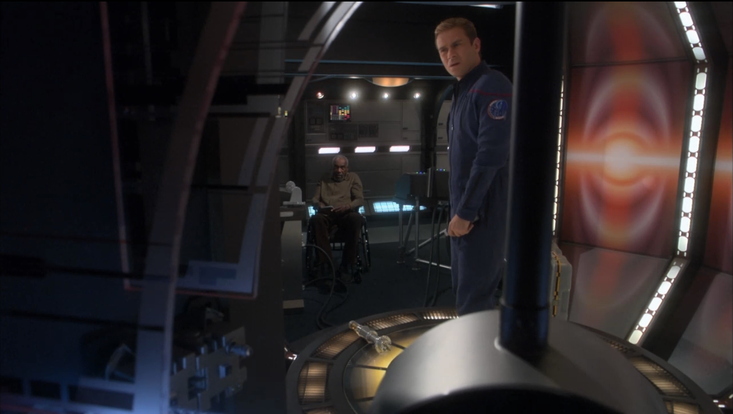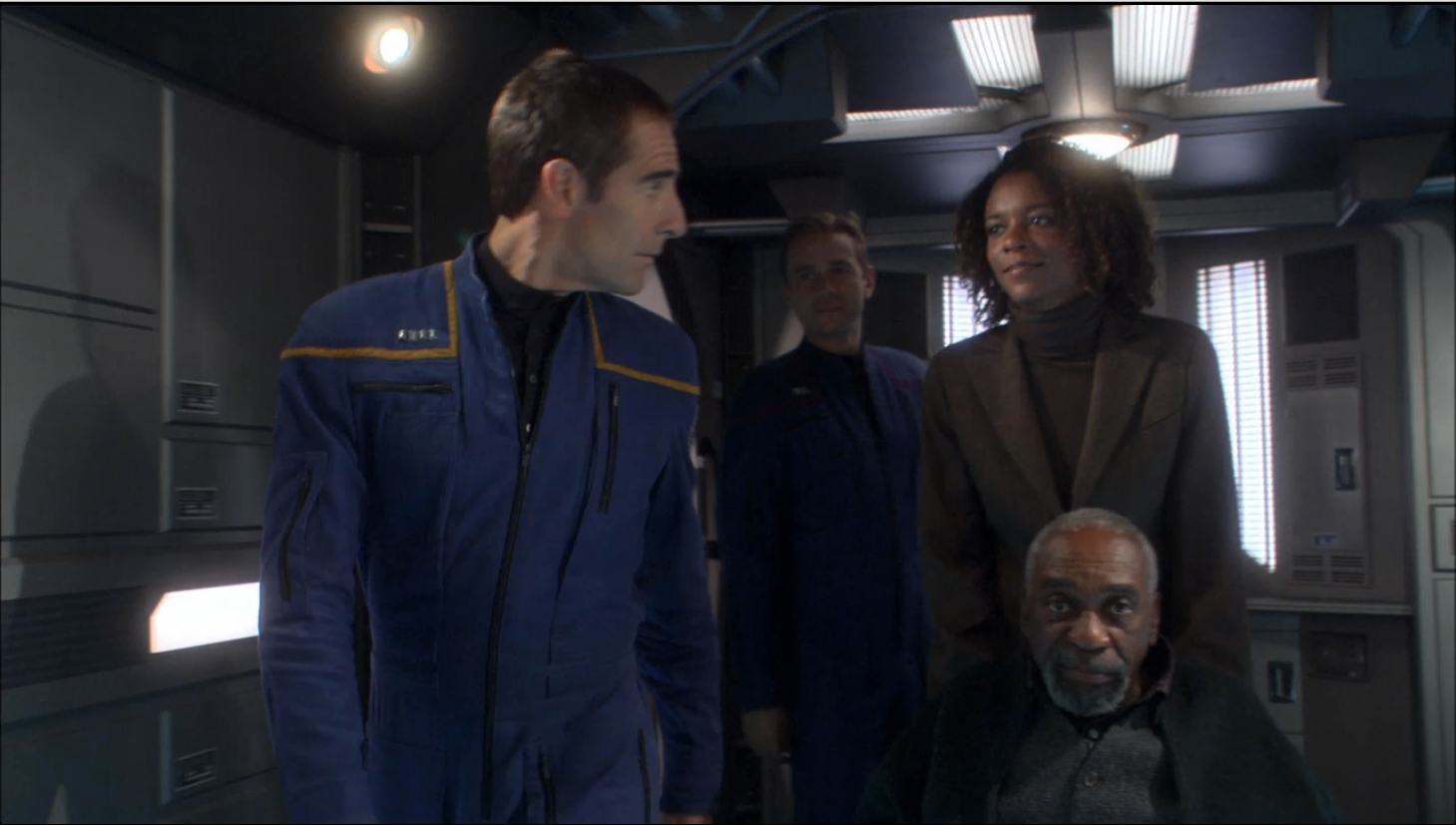 Enterprise welcomes the guy who invented the teleporter. He’s not super short or anything, he’s in a wheelchair. I probably could’ve got a better screenshot