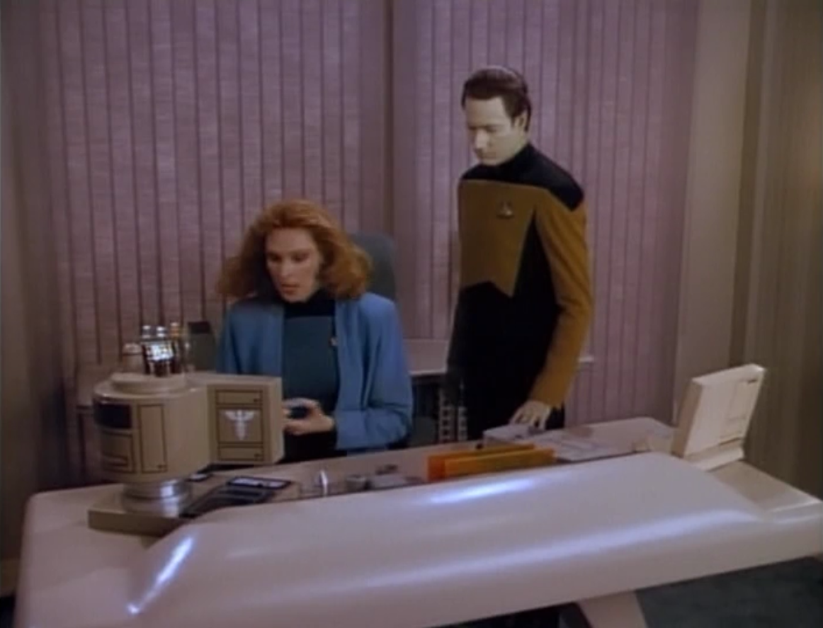 data ← Previous Next → Data is put in charge of figuring out what happened with the transporter. He figures out she didn’t really die, and that the Romulans transporter her over