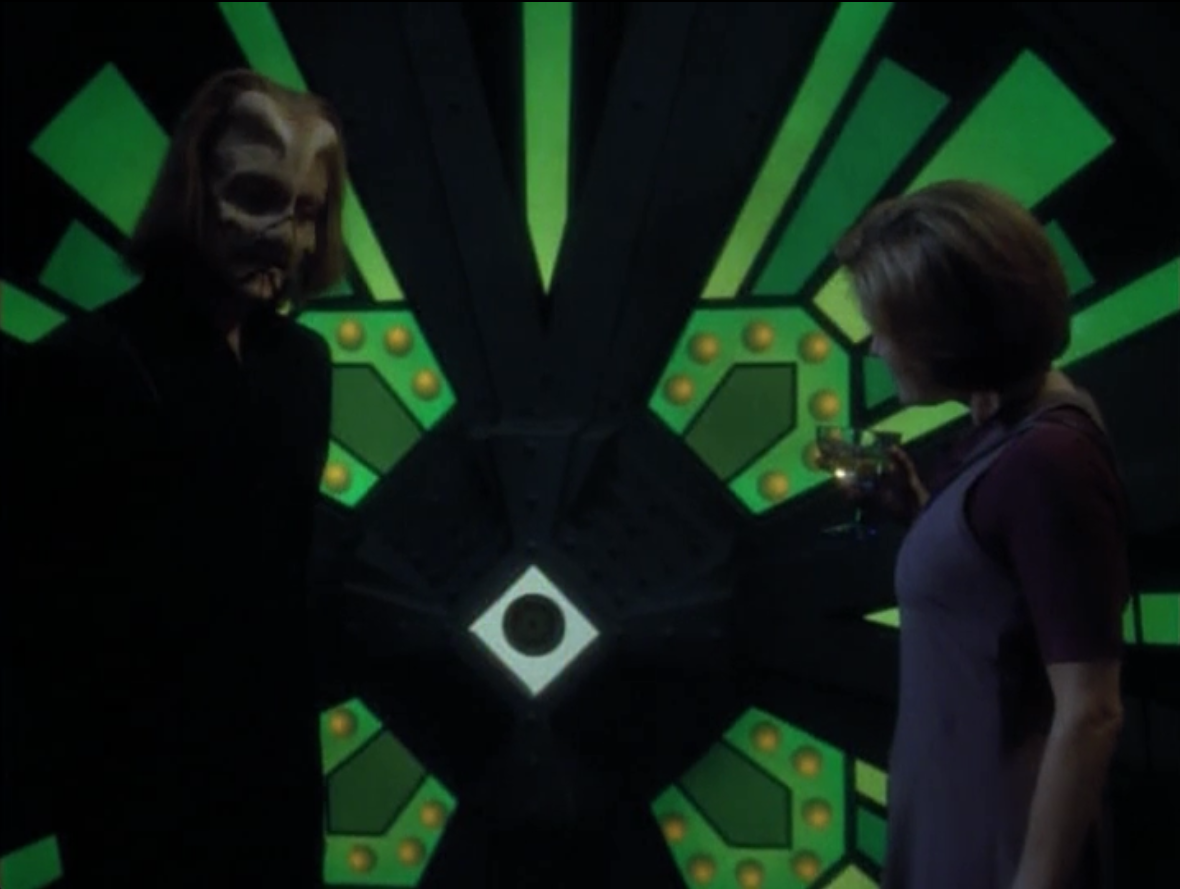 Janeway finds Voyager’s computer and poses as someone who wants to buy it
