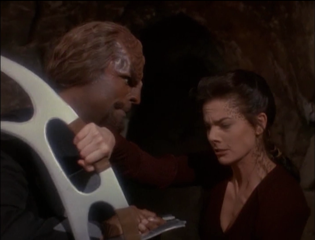 Worf and Jadzia practice fighting together, and probably are in love