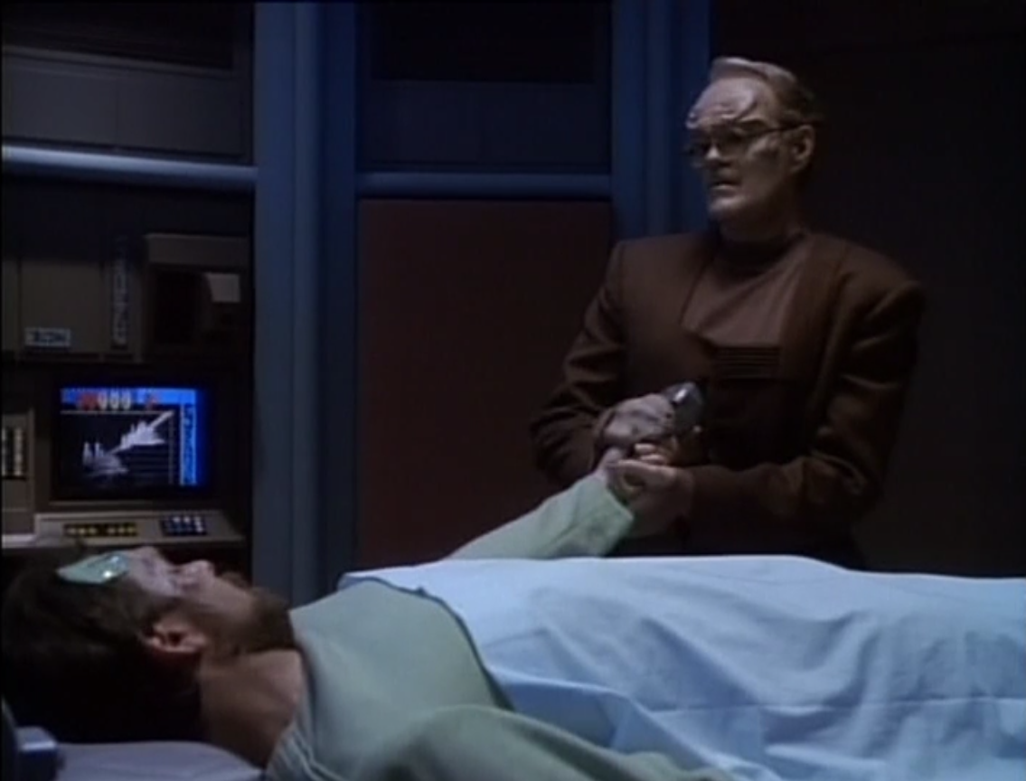 riker ← Previous Next → By now everyone knows Riker is an alien so he makes it look like Riker shoots him