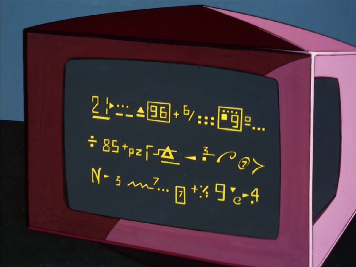 spock ← Previous Next → Spock comes up with a formula to get out of there. Something is being divided by 85 I think. They’re not even gonna try with the usual techno-babel? They’re just gonna show us some wacky symbols and say “there. this solves it”