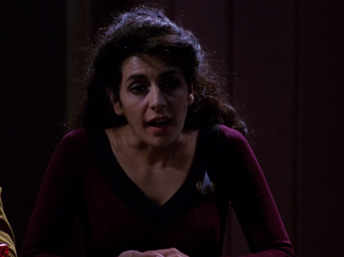 troi ← Previous Next → She figures out that someone is trying to communicate with them but the frequencies are only right for betazoids. It just kills everyone else. Whoops!