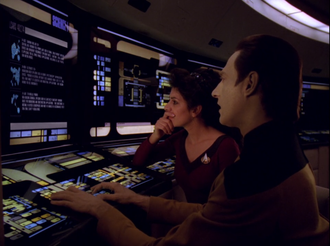 Troi and data ← Previous Next → Troi and Data figure out that the aliens want to collaborate to make an explosion, and that would free their ships