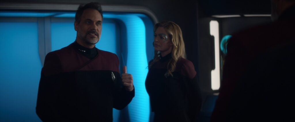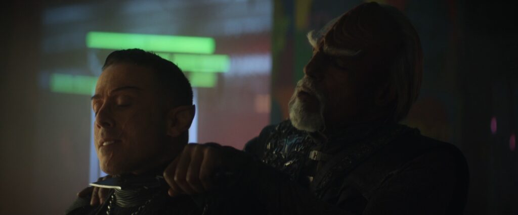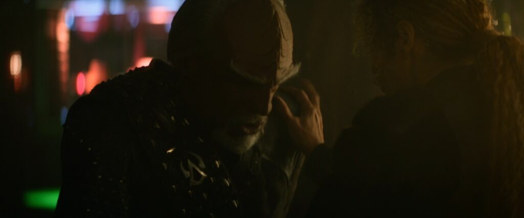 We’re getting a better perspective on what the overall plot of the season is now, and a few of the general directions aren’t bad. Changelings infiltrating starfleet to a degree they were never able to during the Dominion war isn’t bad, and the circuitous route the show has taken to get here is interesting. It’s doubtful anything worthwhile will come of the Jack thread, and the Worf/Raffi B plot is blatant wheel spinning, but it could be worse. And of course the heart of this episode – Ro and Picard hashing out their past – is something that is a great idea to explore. The weaknesses of the show persist, however, and its tough to enjoy the broad strokes when the individual scenes are so poorly put together. The writing alternates between nonsensical, ludicrously direct, and sometimes just plain annoying. Most of the critical Ro scenes gesture toward the right ideas, but the dialogue and flow of the scene is so inhuman (while also being hyper emotional) that all we can really do is squint as hard as possible and imagine how they could get to the same destination in a dramatic and emotionally engaging way.